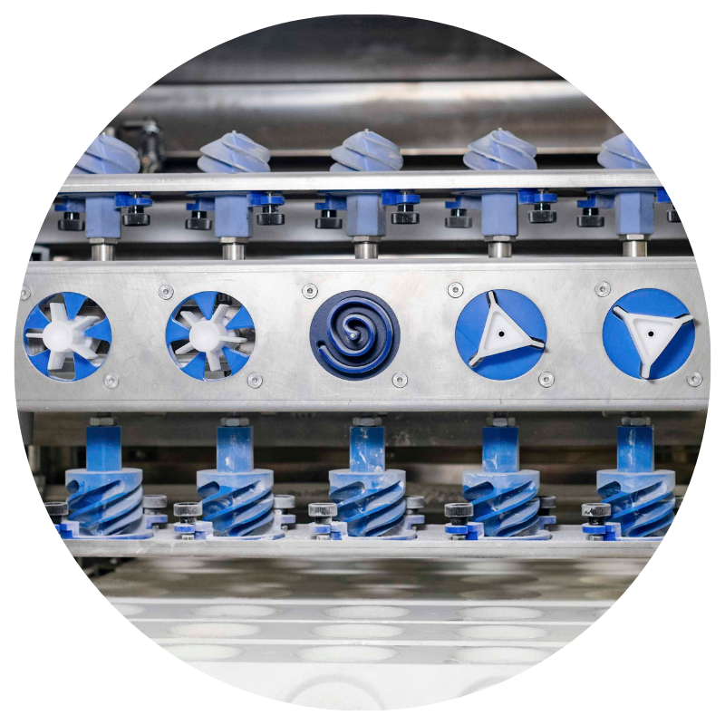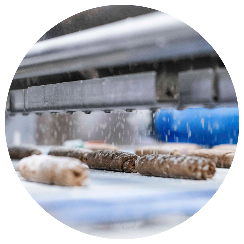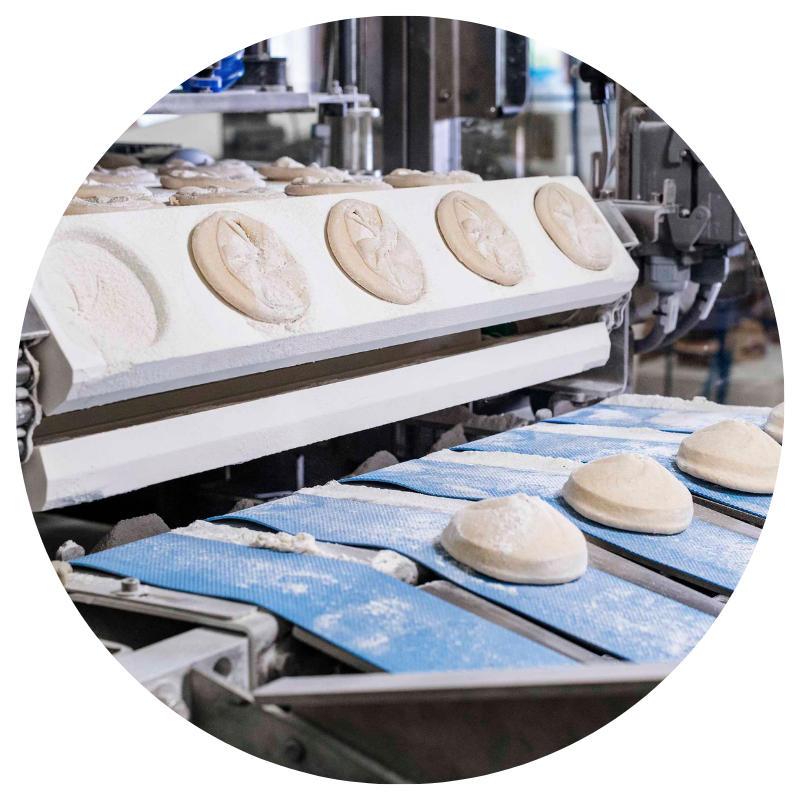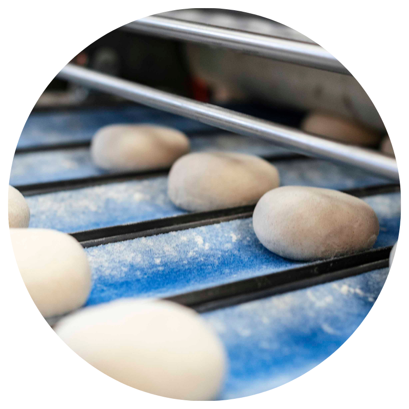 Divida la masa en porciones pequeñas iguales (según el peso deseado). Dependiendo del rendimiento de la masa, se utilizan sistemas divisores/redondeadores o líneas de laminado para la elaboración.