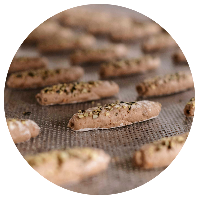 Horneados como piezas separadas en lugar de cortados en rebanadas de una barra grande.